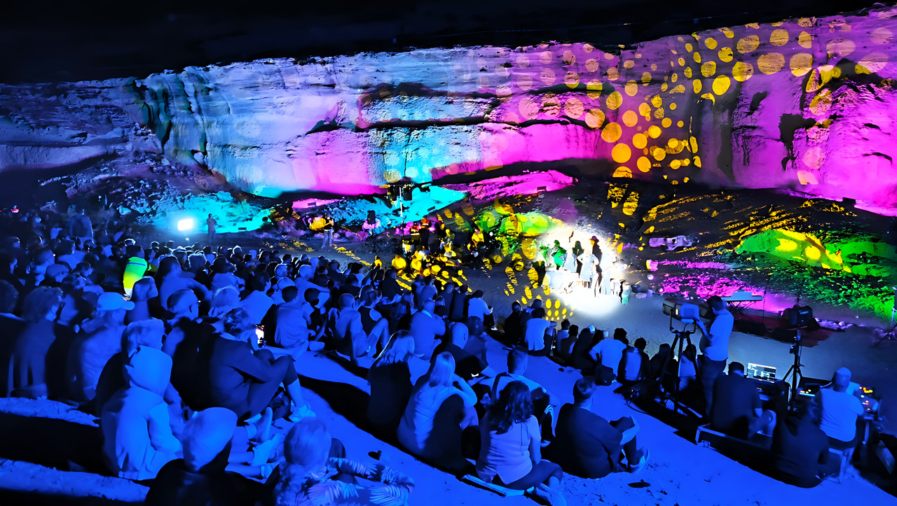 Este depósito natural de agua está ubicado en un magnífico anfiteatro natural, de roca amarilla, y en una gran ladera, a modo de grada, se acomodan los participantes en esta ruta para disfrutar de un espectáculo de luz, música y teatro costumbrista a cargo del grupo de teatro Thynisara, de Granadilla. Esta edición ha estado dedicada a la tradición agrícola del Sur de Tenerife.