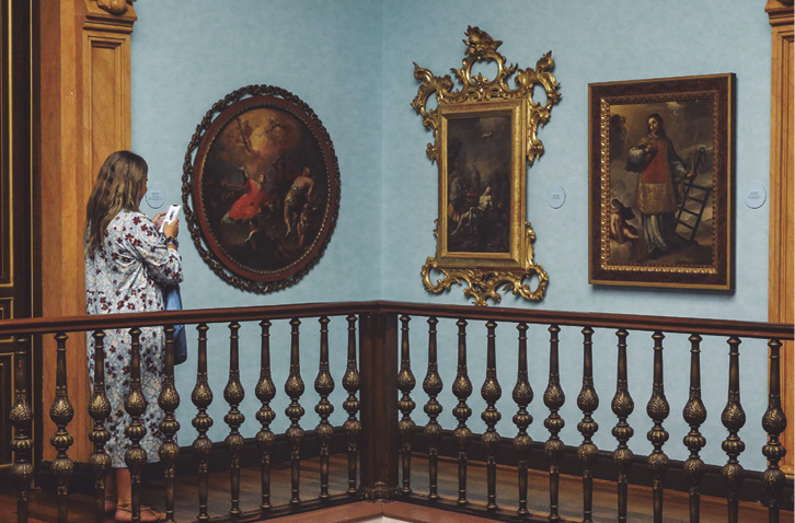 Hemos querido hacer un introito con obras puntuales que marcan distintos puntos o hitos de su trayectoria profesional. Un segundo espacio, que denominamos «índice», o varios representativos de las siguientes salas expositivas se dedican a temas comunes, es decir, pintura religiosa y retratística. Después, nos encontramos un espacio dedicado en primera instancia al retrato: aristócratas, burgueses y alto clero. También hay una sala dedicada de modo monográfico a la Inmaculada, porque debe tenerse en cuenta que durante el reinado de Carlos III, ese título mariano recobra importancia y, gracias a la mediación del monarca y de sus agentes en Roma, se convierte en patrona de España. Todos los pintores de aquella época homenajean constantemente a la Inmaculada, y nos pareció importante desarrollar este asunto o temática con autonomía. Más adelante tenemos una sala donde tratamos la vida pública y la infancia de Jesús. Y finalmente, en la planta superior, se dedica un espacio a lo que hemos llamado el retrato religioso, porque Miranda no es un pintor proclive a representaciones religiosas dramáticas y, cuando lo hace, en la exposición hay dos ejemplos, es por puro encargo (fig. 4). De resto, él trata las representaciones de los santos como si de retratos civiles se tratase.